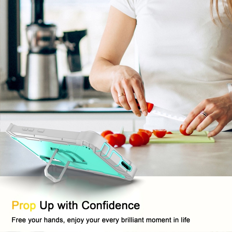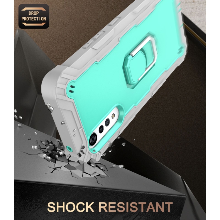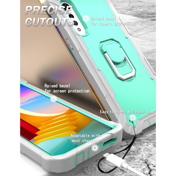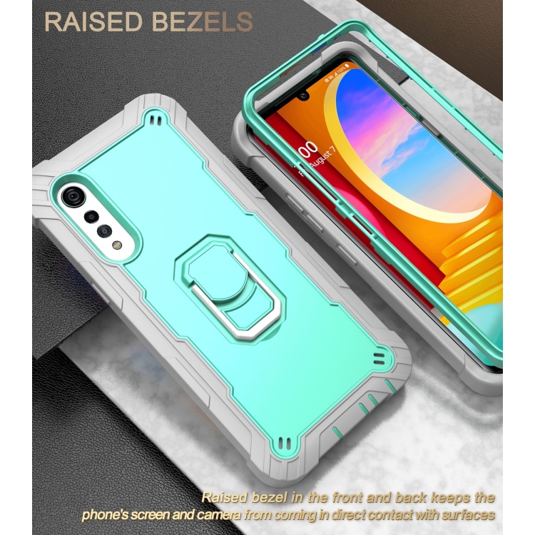 Funda Protectora LG Velvet PC + Caucho a Prueba de Golpes con Soporte Giratorio (Blanco Gris + Menta Verde)