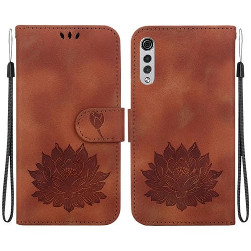 Funda de Cuero para LG Velvet / Velvet 5G / G9 con Relieve de Loto (Marrón)