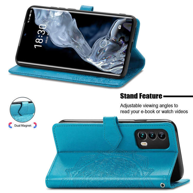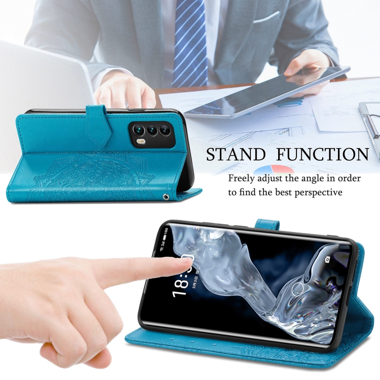 Funda de Cuero Horizontal Flip para Meizu 18 Mandala Flower con Titular, Tragamonedas y Billetera (Azul)