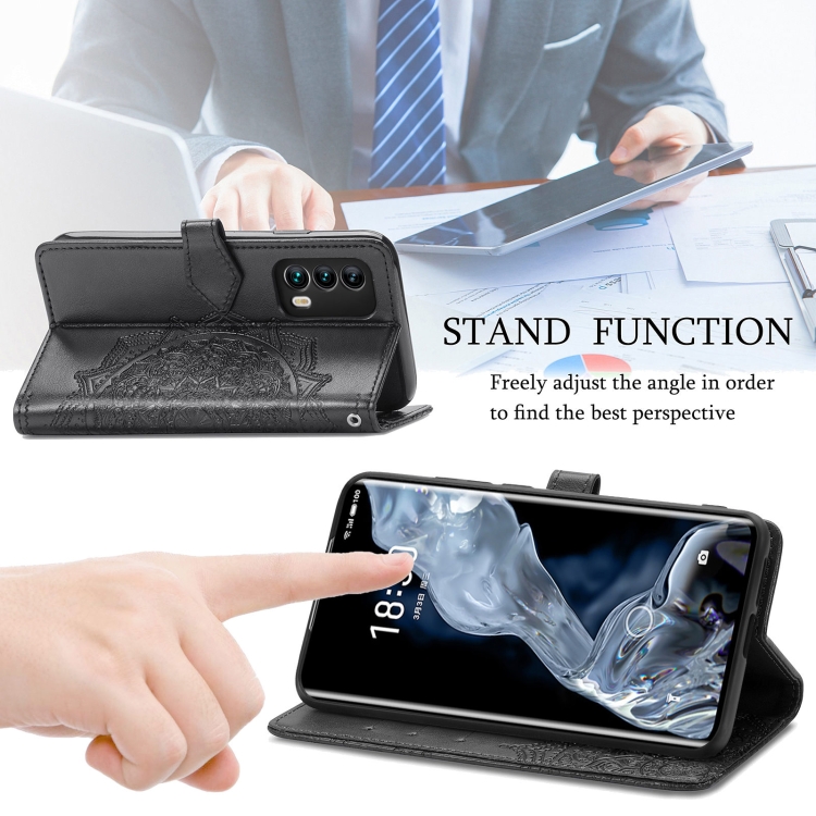 Funda de Cuero para Meizu 18 Mandala Flower Flowsed Horizontal con Soporte, Tarjetas y Billetera (Negro)
