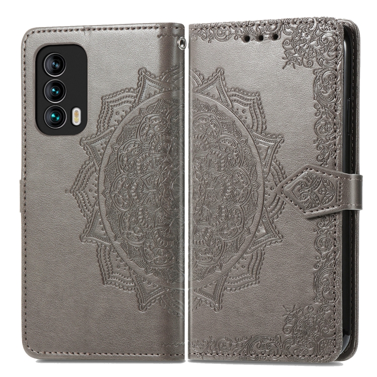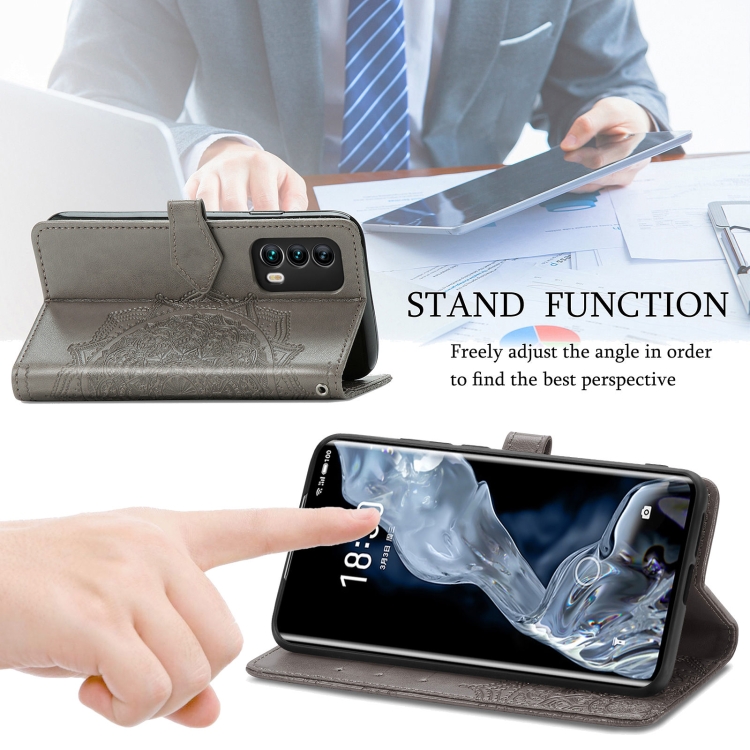 Funda de Cuero para Meizu 18 Mandala Flower Flowsed Horizontal con Titular, Trilladores, Billetera y Cordón (Gris)