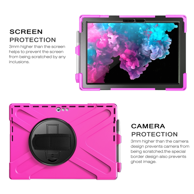 Funda Protectora Silicona para Microsoft Surface Pro 4/5 con Soporte, Correa y Ranura para Bolígrafos (Rose Rojo)