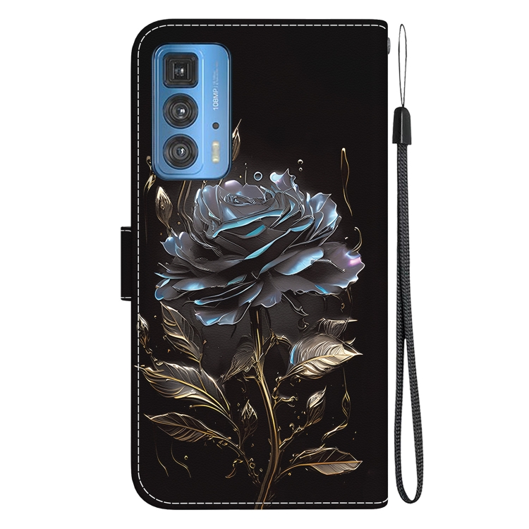 Funda de Cuero para Motorola Edge 20 Pro con Dibujo Coloreado y Textura de Cristal (Rosa Negra)