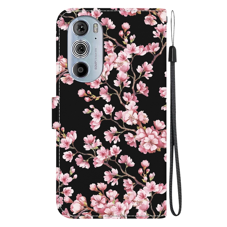 Estuche de Cuero para Motorola Edge + (2022) con Dibujo Coloreado y Textura de Cristal (Flor de Ciruelo)