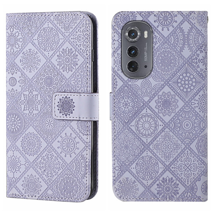 Funda de Cuero para Motorola Edge 2022 con Patrón en Relieve de Estilo Étnico (Púrpura)