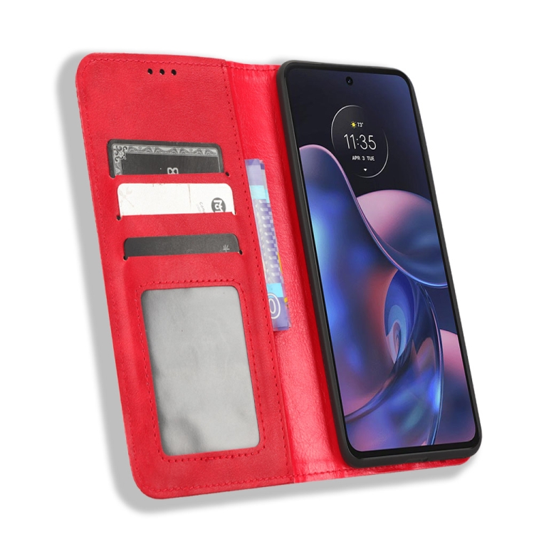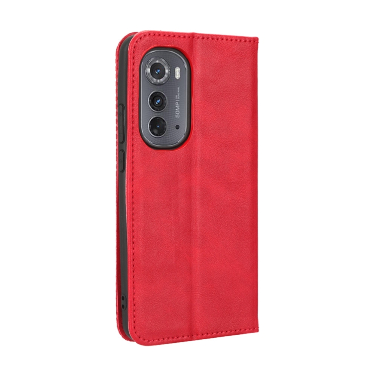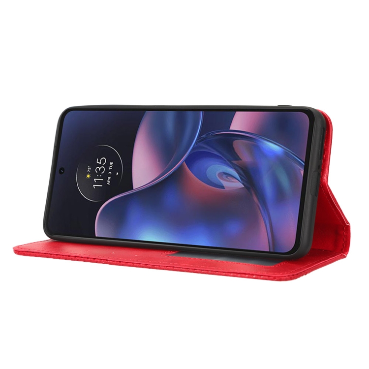 Funda de Cuero para Motorola Edge 2022 con Hebilla Magnética y Textura Retro (Rojo)