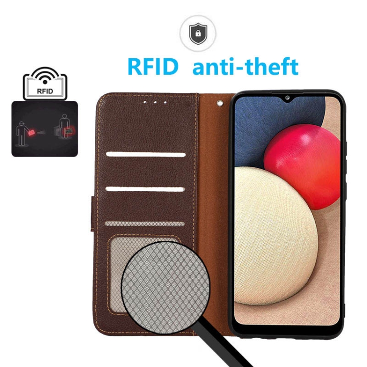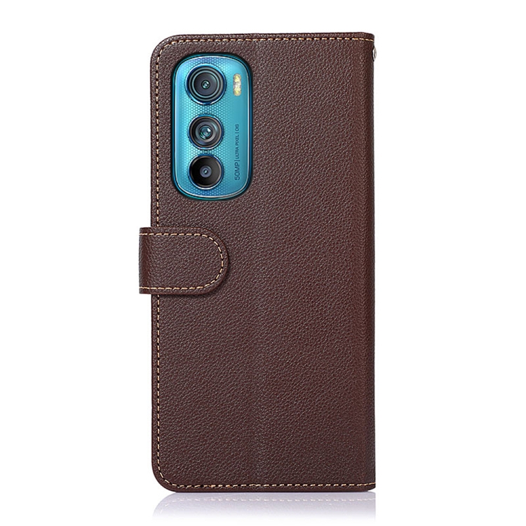 Funda para Motorola Edge 30 5G Khazneh Cuero Texturizado Litchi con RFID (Marrón)