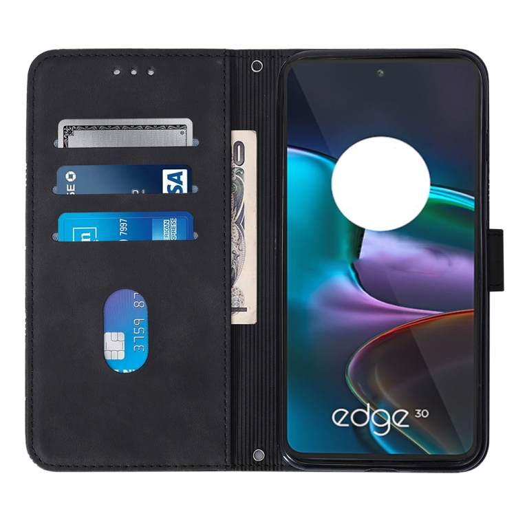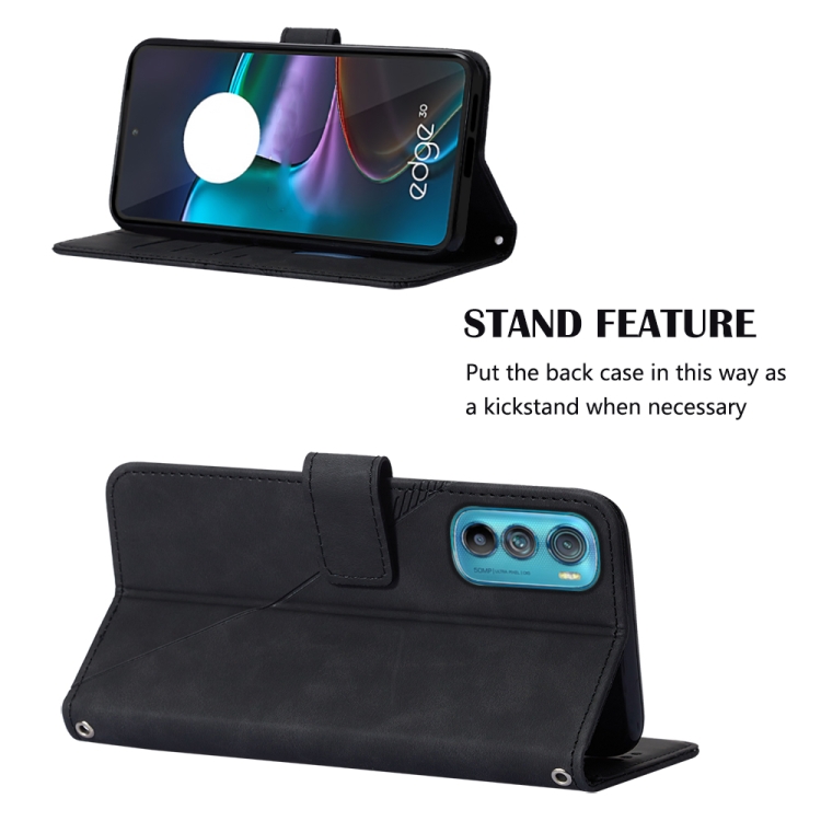 Funda de Cuero para Motorola Edge 30 Crossbody con Tapa en Relieve (Negro)