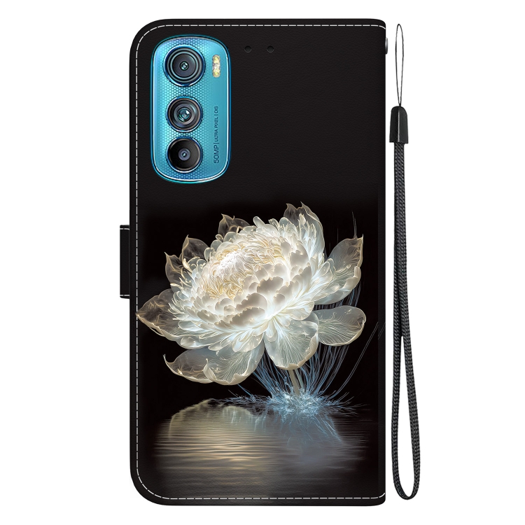 Funda de Cuero para Motorola Edge 30 con Dibujo Coloreado y Textura de Cristal (Peonía de Cristal)