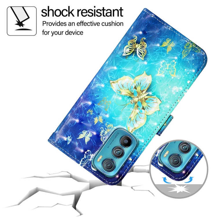 Funda para Motorola Edge 30 de Cuero con Tapa Horizontal y Pintura 3D (Mariposa Dorada)