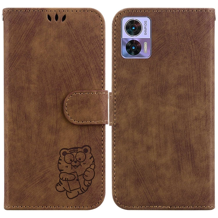 Funda de Cuero para Motorola Edge 30 Neo y 30 Lite con Relieve Little Tiger (Marrón)