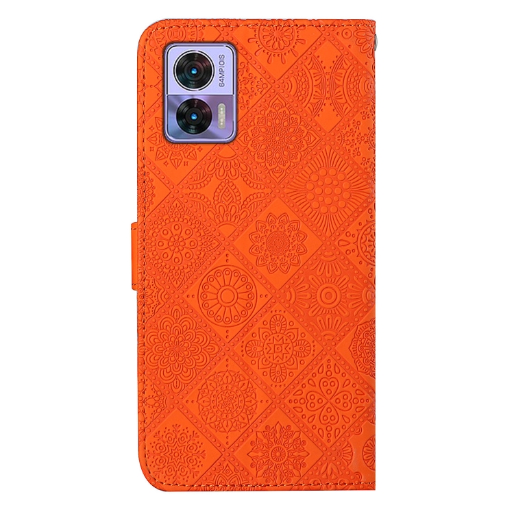 Funda para Motorola Edge 30 Neo de Cuero con Patrón en Relieve Étnico (Naranja)