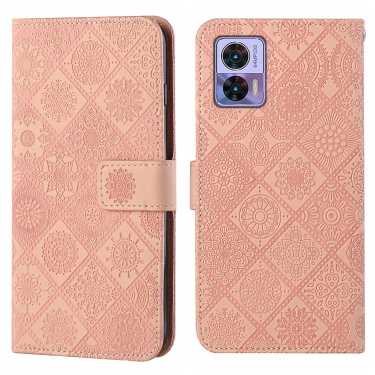 Funda para Motorola Edge 30 Neo de Cuero con Patrón en Relieve Estilo Étnico (Rosa)