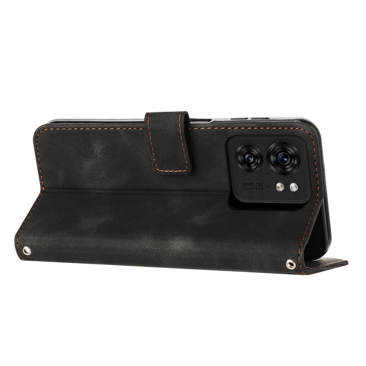 Funda de Cuero para Motorola Edge 40 Dream Triangle con Cordón (Negro)