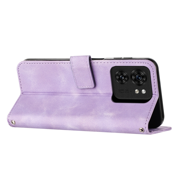 Funda de Cuero con Cordón para Motorola Edge 40 Dream Triangle (Púrpura)