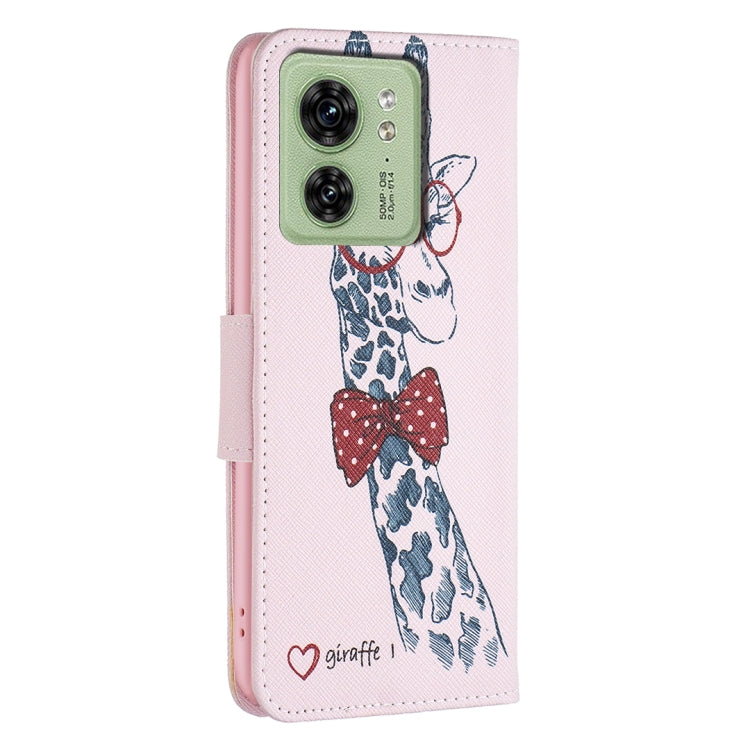 Estuche de Cuero para Motorola Edge 40 con Patrón de Dibujo Coloreado (Jirafa)