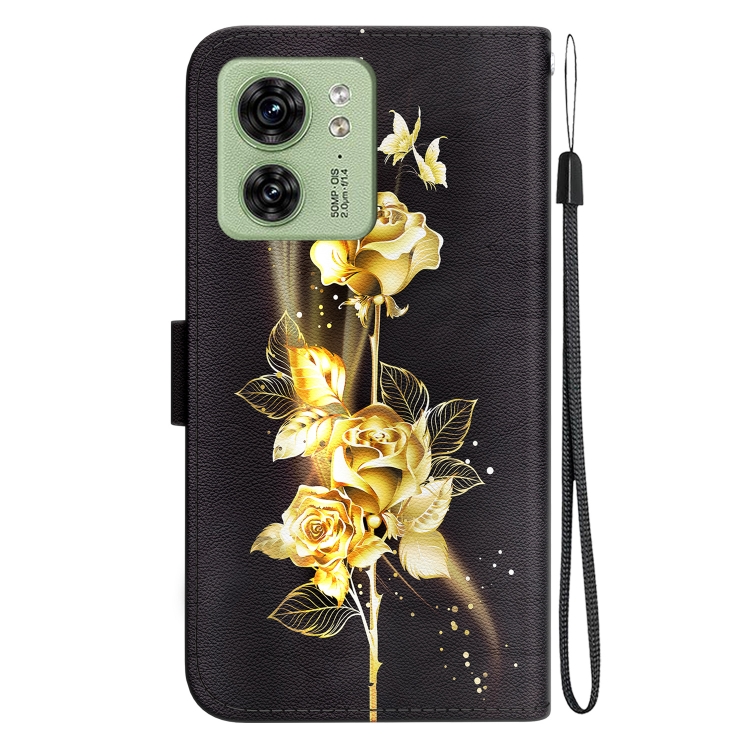 Funda de Cuero Motorola Edge 40 con Dibujo Coloreado y Textura de Cristal (Mariposa Dorada Rosa)