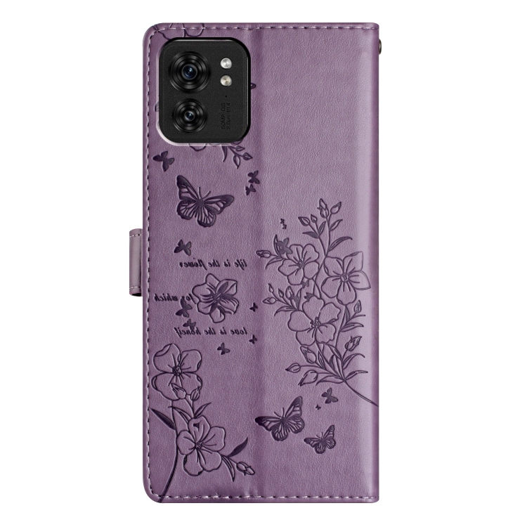 Funda de Cuero para Motorola Edge 40 con Mariposas y Flores (Púrpura)
