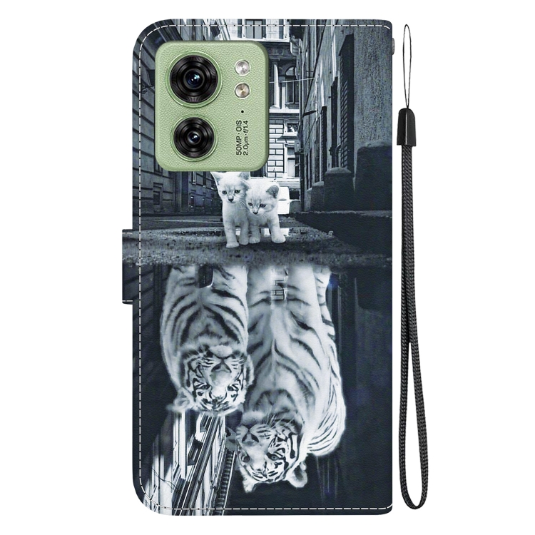 Funda de Cuero para Motorola Edge 40 con Dibujo Coloreado y Textura de Cristal (Reflejo de Tigre Gato)