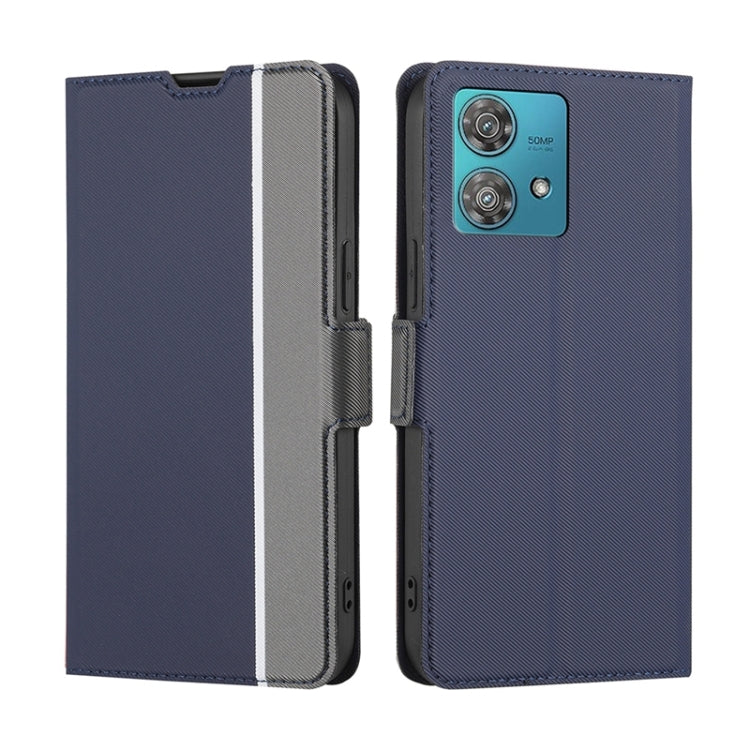 Funda de Cuero para Motorola Edge 40 Neo 5G con Botón Lateral y Textura de Sarga (Azul)