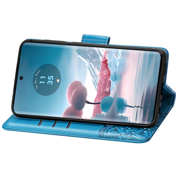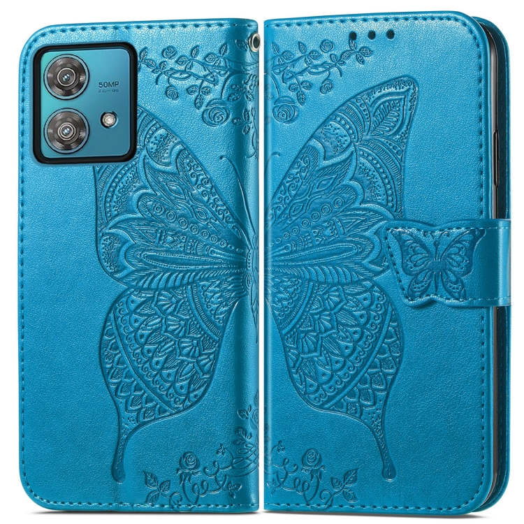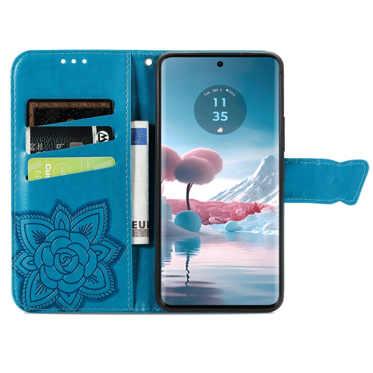 Funda de Cuero para Motorola Edge 40 Neo Butterfly Love Flower en Relieve (Azul)