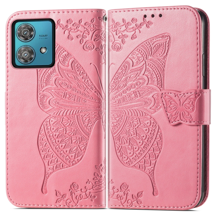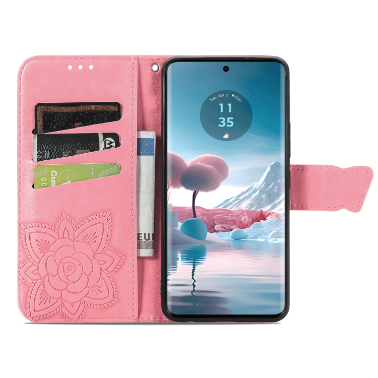 Funda de Cuero para Motorola Edge 40 Neo Butterfly Love Flower en Relieve (Rosa)