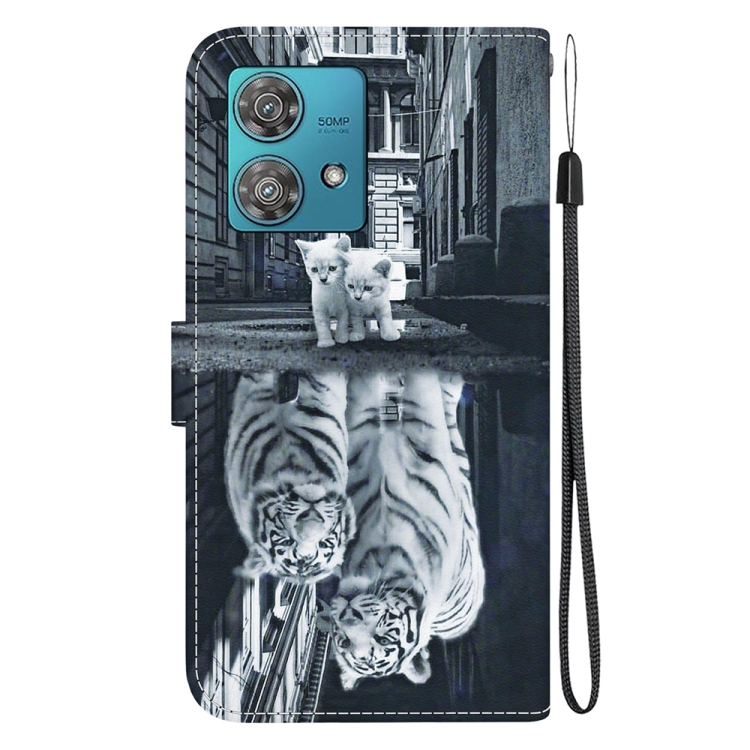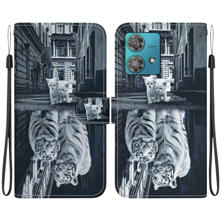 Funda de Cuero para Motorola Edge 40 Neo con Dibujo Coloreado Tigre Gato (Crystal Texture)