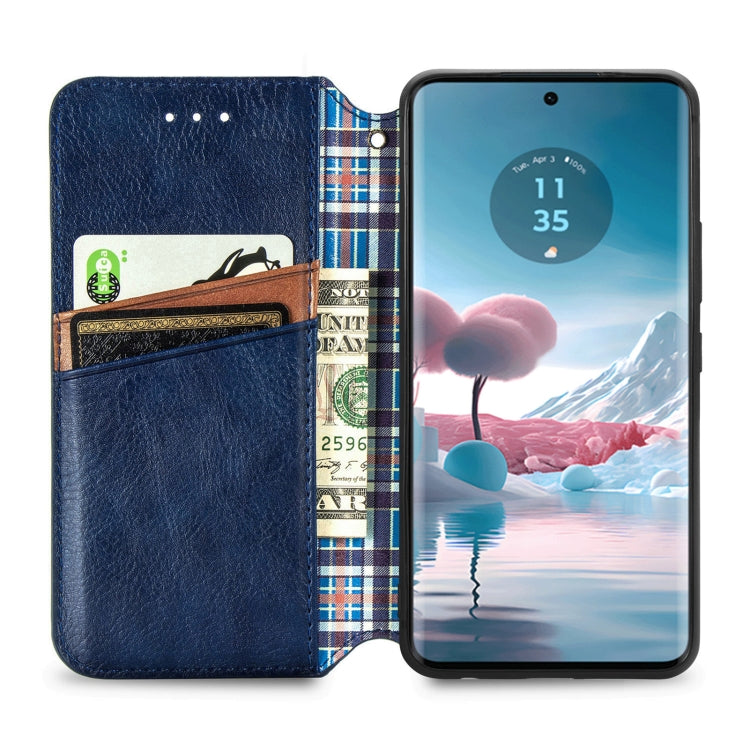 Funda de Teléfono para Motorola Edge 40 Neo Cubic Grid Cuero Magnético Prensado (Azul)