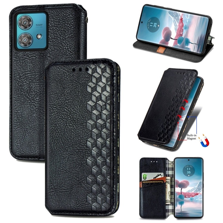 Funda de Cuero Magnético Prensado Cubic Grid para Motorola Edge 40 Neo (Negro)