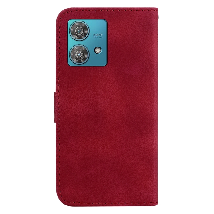 Funda de Cuero para Motorola Edge 40 Neo con Relieve en Forma de 7 (Rojo)