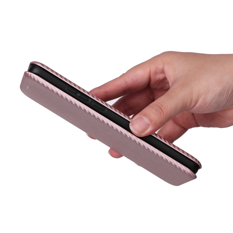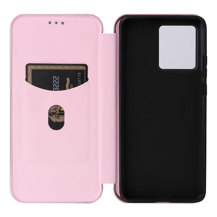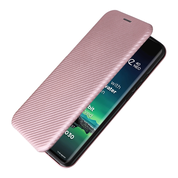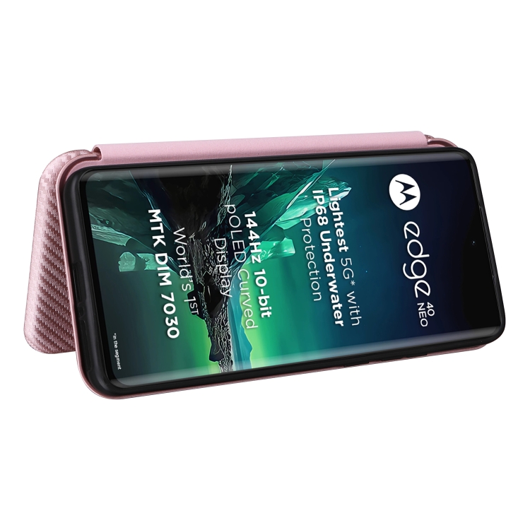 Funda de Cuero con Tapa para Motorola Edge 40 Neo con Textura de Fibra de Carbono (Rosa)
