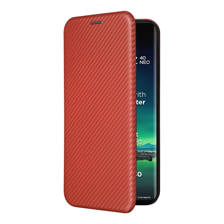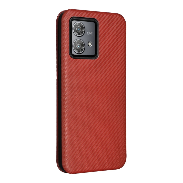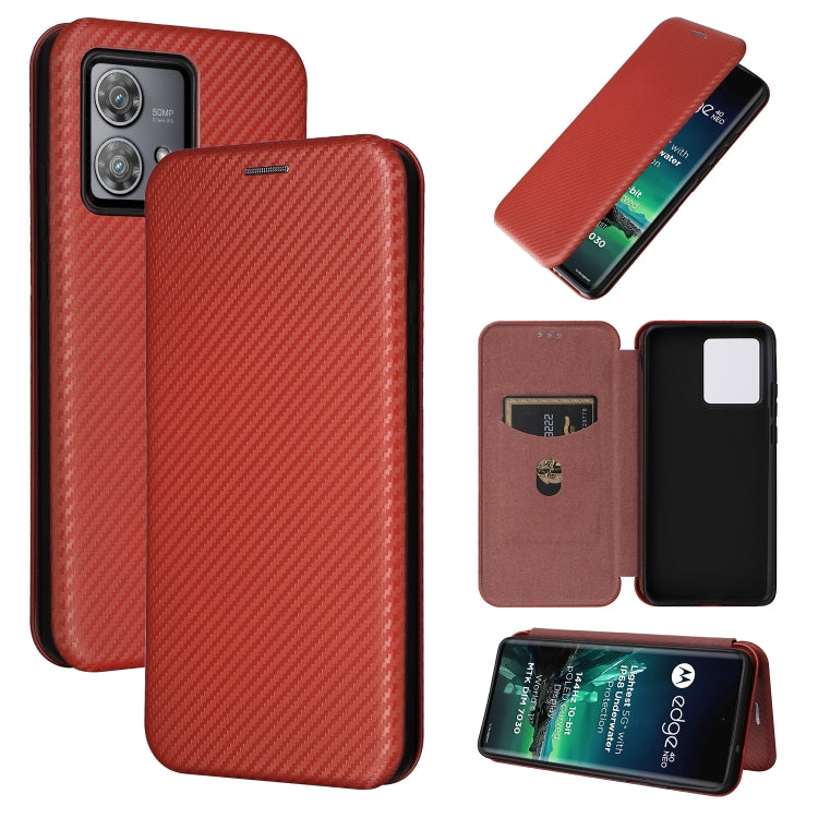 Funda de Teléfono Motorola Edge 40 Neo Cuero con Tapa y Textura de Fibra de Carbono (Marrón)