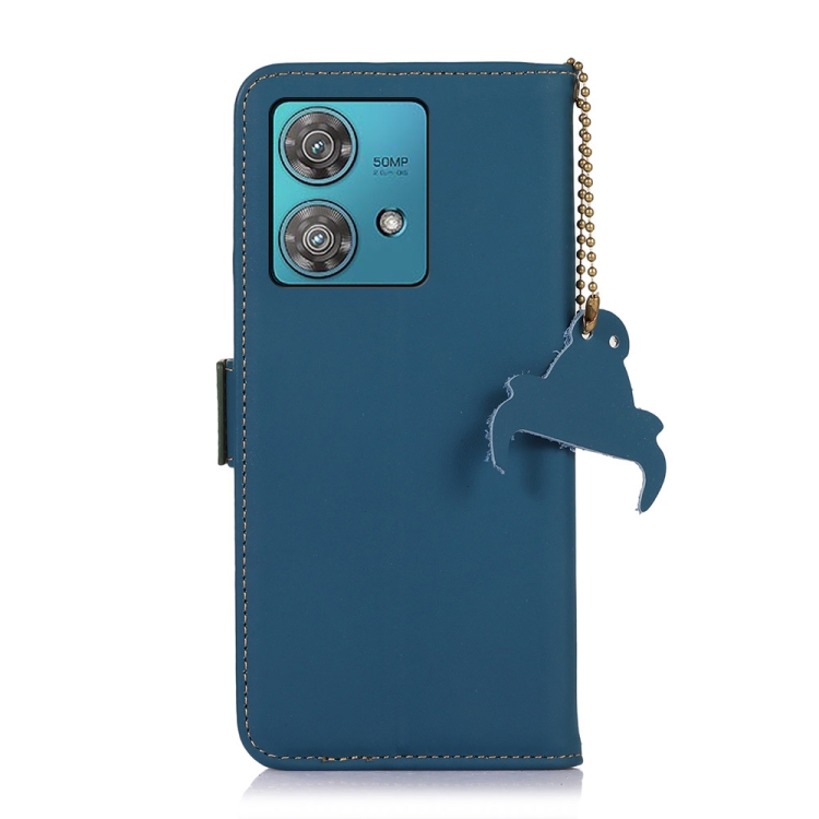 Funda de Cuero Genuino Magnética con Rfid para Motorola Edge 40 Neo (Azul)