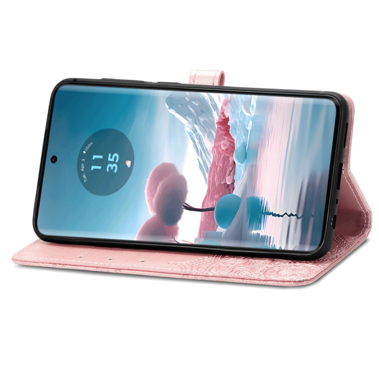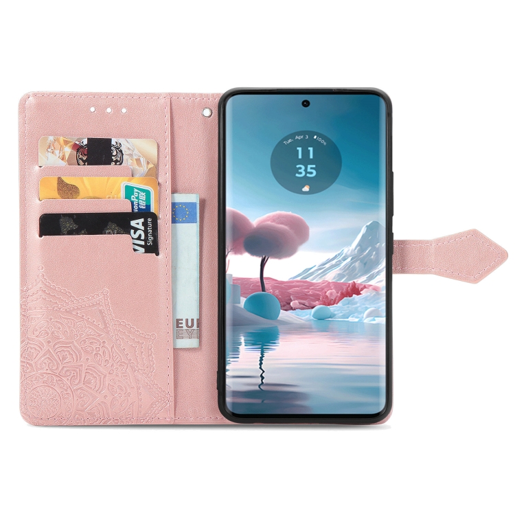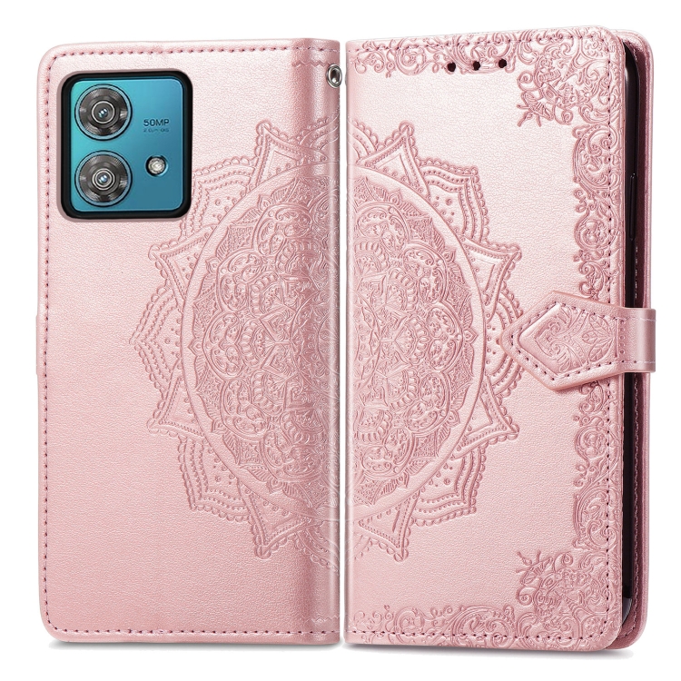 Funda para Motorola Edge 40 Neo de Cuero con Relieve de Flores Mandala (Oro Rosa)