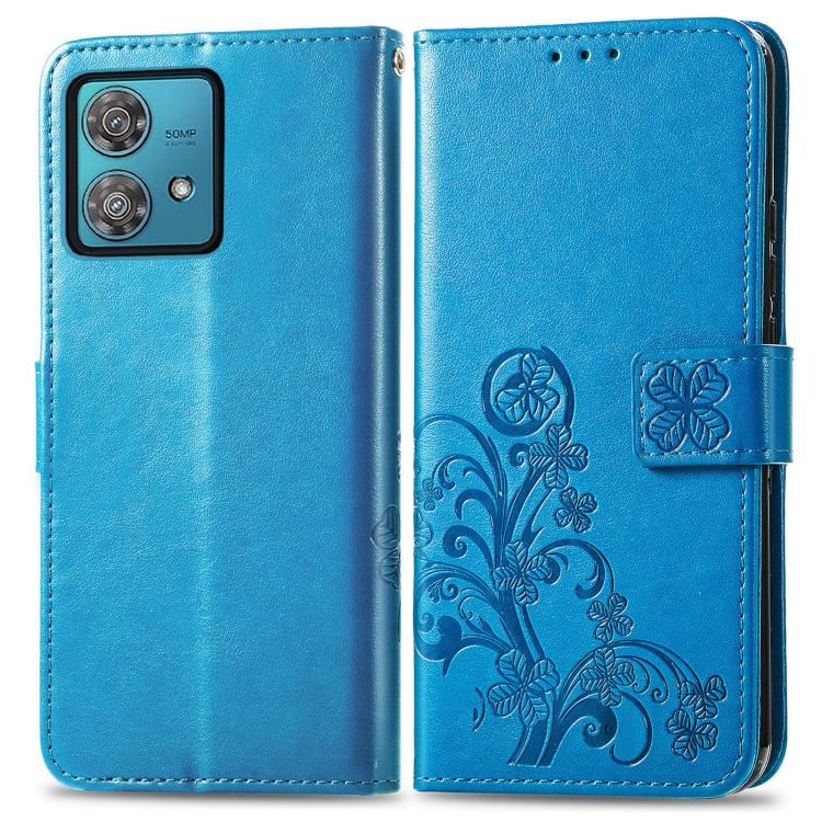 Funda para Motorola Edge 40 Neo de Cuero Repujado con Cierre de Cuatro Hojas (Azul)