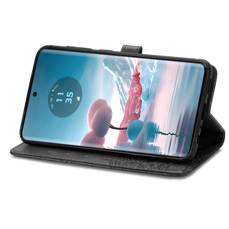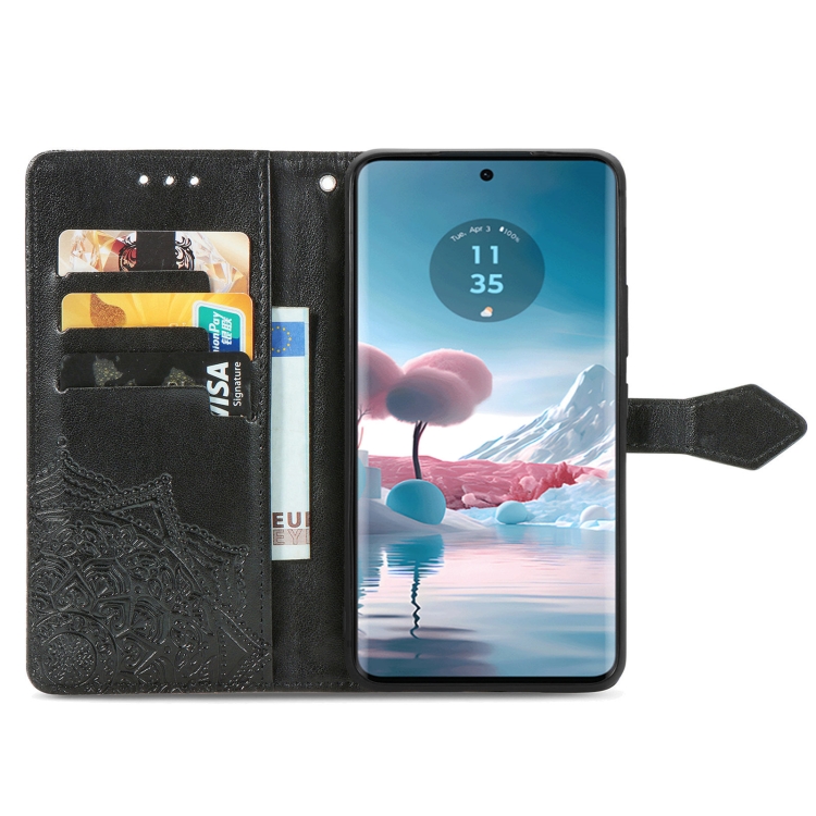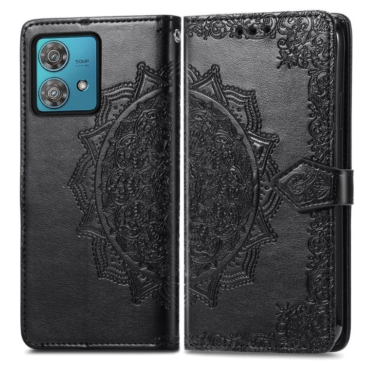 Funda de Cuero para Motorola Edge 40 Neo Mandala Flower en Relieve (Negro)
