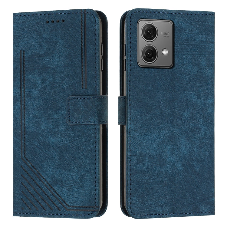 Funda de Cuero Skin Feel para Motorola Edge 40 Neo con Patrón de Rayas y Cordón (Azul)