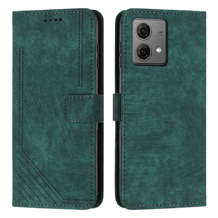 Funda de Cuero para Motorola Edge 40 Neo con Patrón de Rayas y Cordón (Verde)