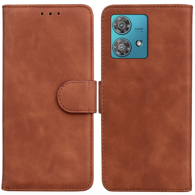 Funda de Cuero con Tapa para Motorola Edge 40 Neo Skin Feel Pure Color (Marrón)