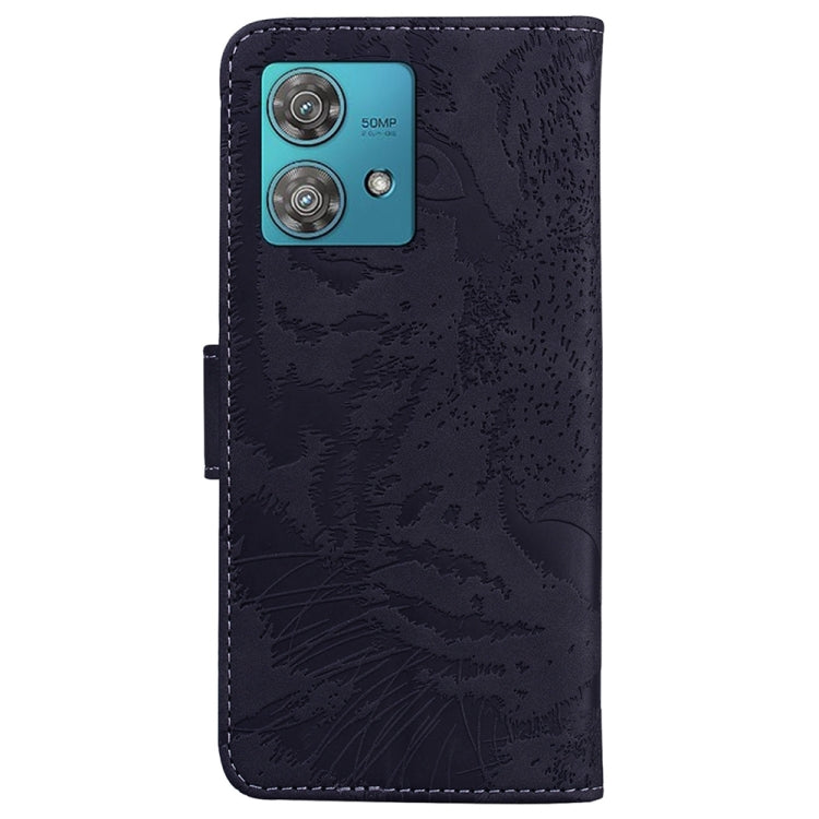 Funda de Cuero para Motorola Edge 40 Neo Tiger con Patrón en Relieve (Negro)