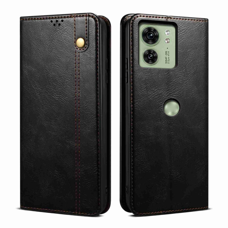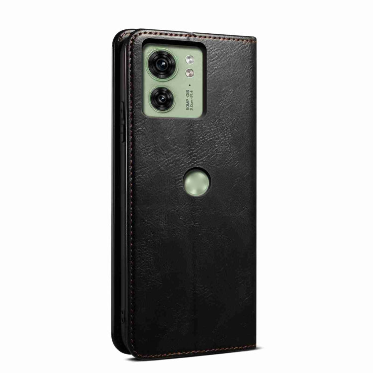 Funda de Cuero para Motorola Edge 40 Oil Wax Crazy Horse Texture (Negro)
