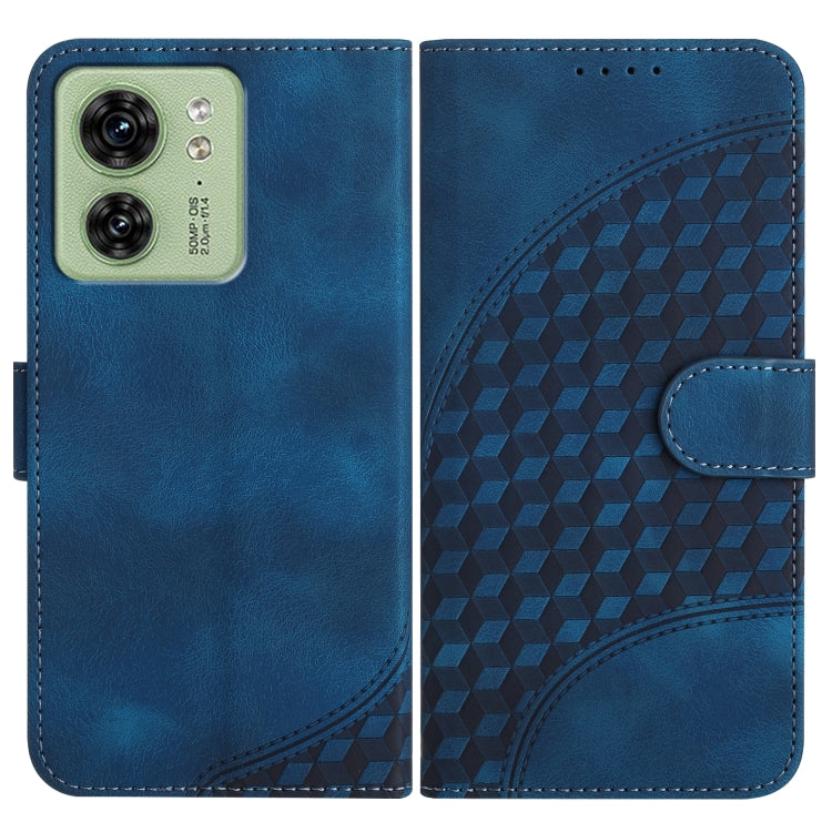 Funda de Cuero para Motorola Edge 40 Yx0060 con Relieve y Cabeza de Elefante con Cordón (Azul Real)