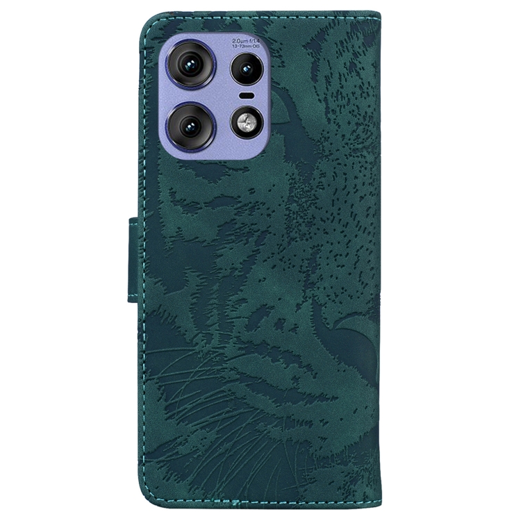 Funda de Cuero para Motorola Edge 50 Pro Tiger Embossed Pattern (Verde)