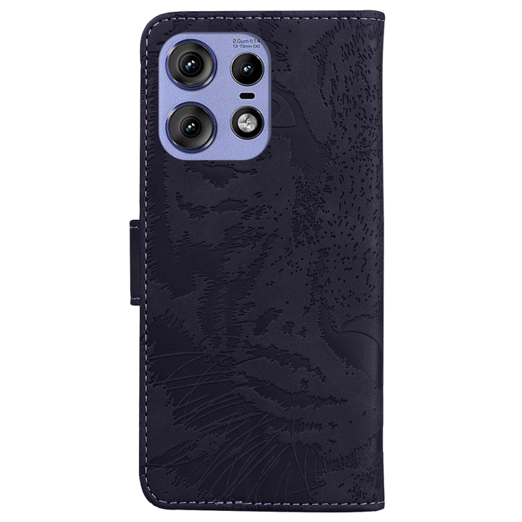 Funda de Cuero para Motorola Edge 50 Pro Tiger con Patrón en Relieve (Negro)
