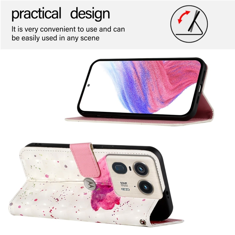 Funda para Motorola Edge 50 Ultra de Cuero con Tapa Horizontal y Pintura 3D (Flor)