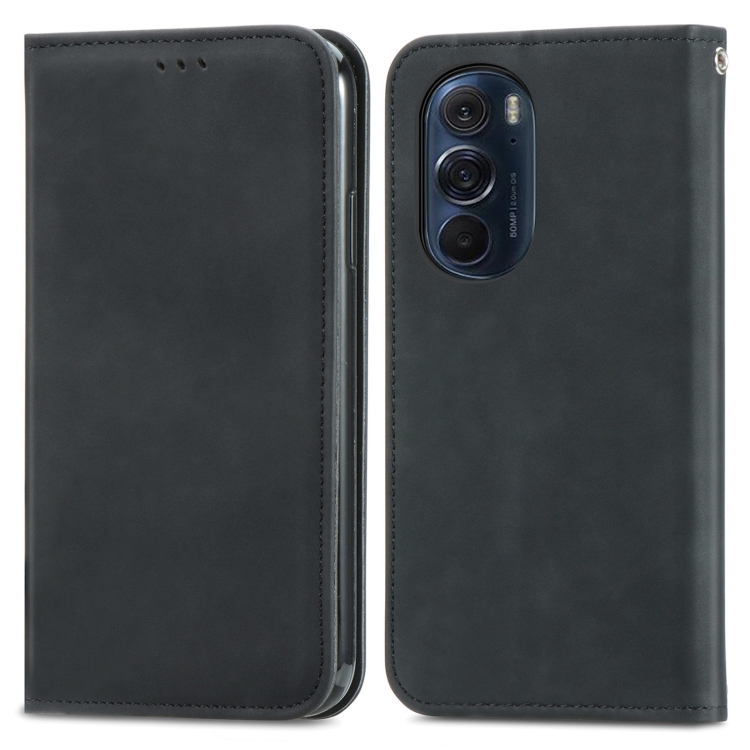 Funda Telefónica Motorola Edge X30 Retro Piel Sensación de Cuero Horizontal Magnético (Negro)