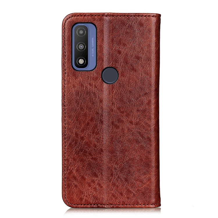 Funda de Cuero Magnético Motorola G Pura Crazy Horse Texture Flip Horizontal con Soporte y Ranuras para Tarjetas (Marrón)