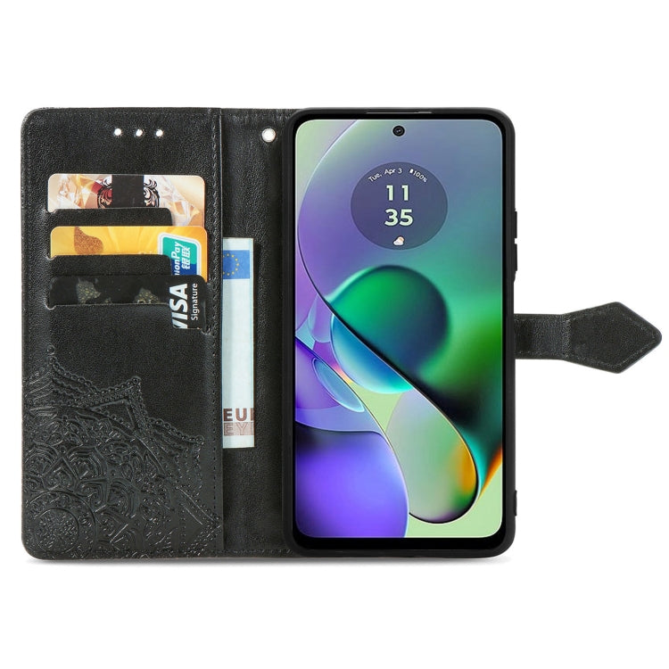 Funda para Motorola G54 5G de Cuero con Relieve Flor de Mandala (Negro)