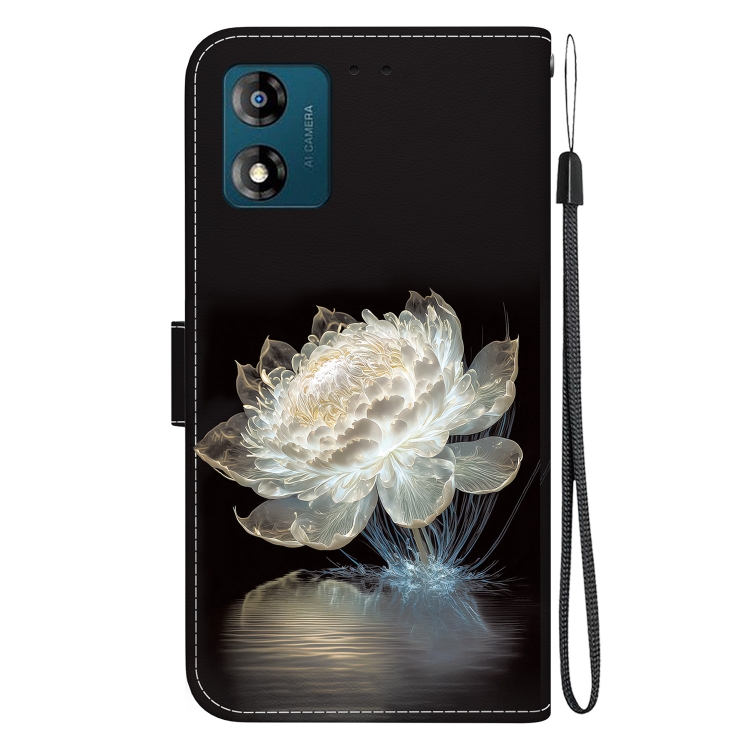 Estuche de Cuero para Motorola Moto E13 con Dibujo Coloreado y Textura de Cristal (Peonía de Cristal)