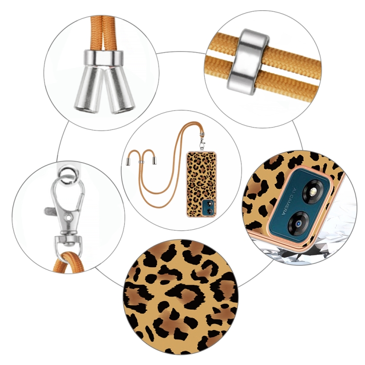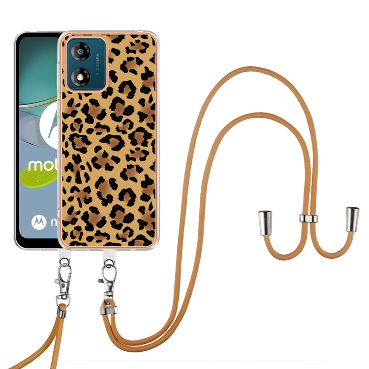 Estuche para Motorola Moto E13 Imd Doble Cara con Galvanoplastia y Cordón (Leopardo)